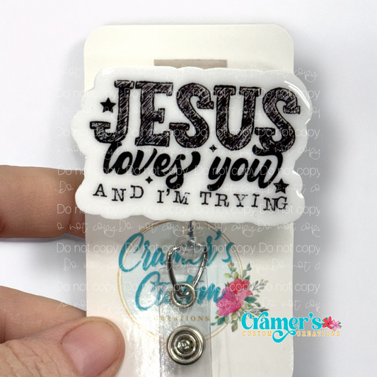Jesus Loves You and I'm Trying Badge Reel